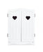 - White wooden play armoire or closet for storing and organizes clothing for dolls and stuffed animals