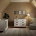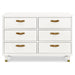 The classic inspired Tanner 6-Drawer Dresser is a contemporary take on a traditional piece. With unique details such as leather handles and elegant bronze metal feet caps, the Tanner is the perfect accent piece for all your storage needs. The six spacious drawers are built with dovetail construction and ball-bearing drawer glides. Available in a Warm White finish.