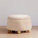The Tuffet Storage Ottoman combines style and function with its plush upholstery and versatile design. Wooden ball feet add a distinctive touch while providing sturdy support, and the removable lid reveals a spacious interior for convenient storage. Perfect as a footrest, extra seating, or an elegant organizational solution.