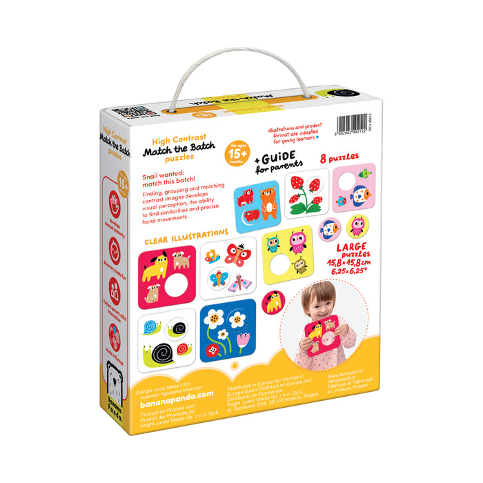The set contains 8 large puzzles and a guide for parents that is full of ideas for creative fun.