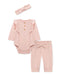 Your little one will look extra-adorable in this pretty-in-pink ruffle bodysuit & bow pant set for newborn baby girls.