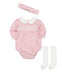 Your little one will look so sweet in this floral bubble and sock set for newborn baby girls. The bubble features a special collar for added cuteness that pairs perfectly with socks and floral headband.