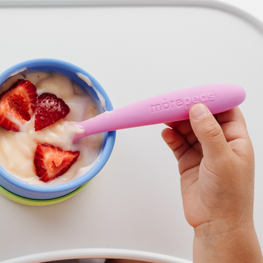 MorepeasThese ultra-soft silicone baby to toddler spoons protect gums, newly developing teeth and are soft enough to chew on as a teether. The size was car...