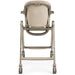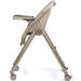 - Innovative closing system with easy to access buttons on both sides. When closed, the high chair is extremely compact and remains upright even with the tray in place.