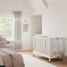 The Maki full-size crib is the modern lifestyle essential! Its clean, modern geometric lines and foldable frame make this crib portable and easy to store. Designed for movement with removable wheels and lightweight timber construction, making it perfect for secondary living spaces or a sleepover at Grandma’s. Modern and functional, an included toddler bed conversion kit allows you to seamlessly convert from crib to toddler bed as your babe grows.