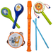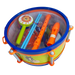 Instruments Galore: Maracas, a flute, a tambourine, a rattle, and a marching drum with drumsticks!