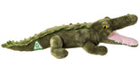 Our American Alligator has a large open mouth and white felt teeth, and green soft fur. Growing up to 10 feet long, these reptiles can walk, run and swim. Made of recycled materials and featuring a recycle symbol patch.