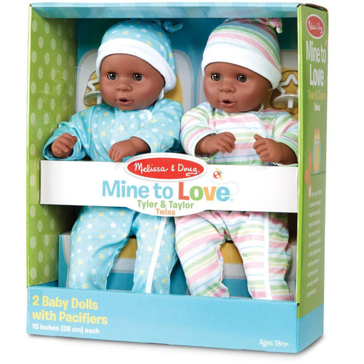 Melissa & DougIt's twice the fun with twin 15-inch dolls Tyler and Taylor! They have adorable coordinating removable rompers and caps, eyes that open and clo...