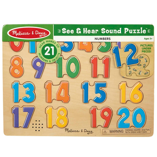Melissa & DougThis 21-piece wooden sound puzzle pronounces the name of each number when its piece is placed correctly! Pieces are slightly raised above the p...