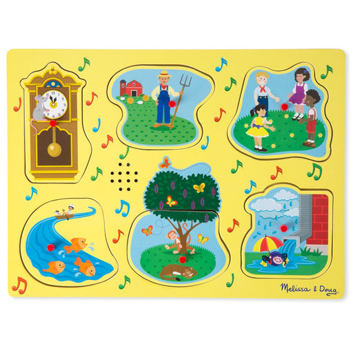 Melissa & DougSing along with favorite childhood characters like Humpty Dumpty and Jack and Jill with this unique wooden peg song puzzle! Match the six illus...