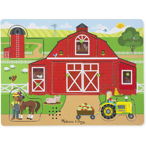 Melissa & DougLift one of the eight peg puzzle pieces to see and hear whats happening all over this busy farm! This unique sound puzzle lets kids two and older a...