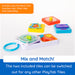- Encourages sensory learning, fine motor skills, cause-effect learning