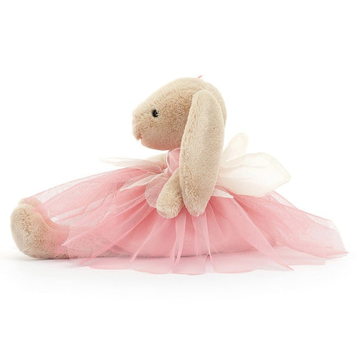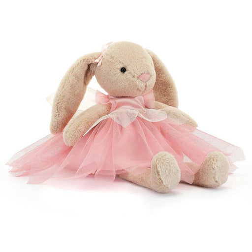 JellycatLottie Fairy Bunny is a soft beige bunny with long limbs and ears. In a pink satin dress with layers of net and organza wings, Lottie has a pink su...