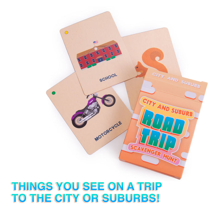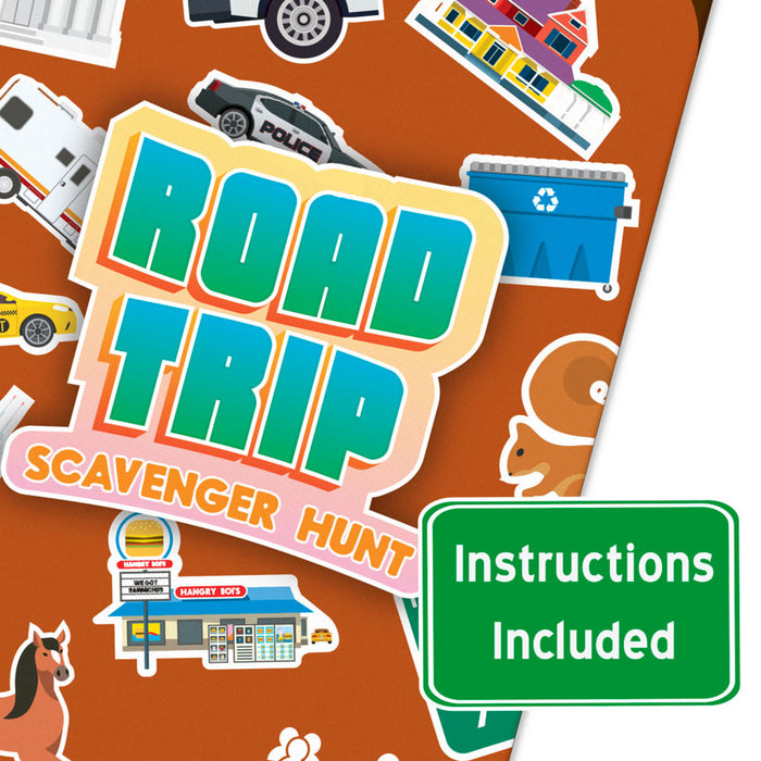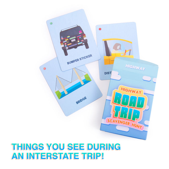 Road Trip Scavenger Hunt is a classic game for 1-6 players of all ages. Includes two decks of 50 cards, a Highway trip deck and a City Suburbs trip deck. Choose the one that fits your road trip the best! With two quick and simple ways to play, all you need is a player or helpful adult to get started. Pretty soon "are we there yet?" will sound a bit more like "can we drive a little longer?"