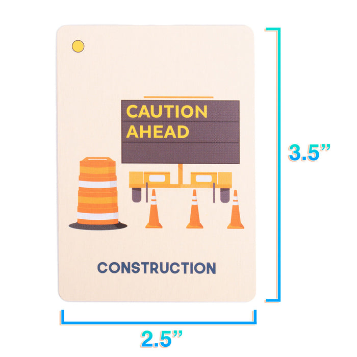 There's so much to see along the highway! This is a deck of 50 cards made for the hustle and bustle of an interstate road trip. Things you might see: a bridge, rest area, or semi-truck.