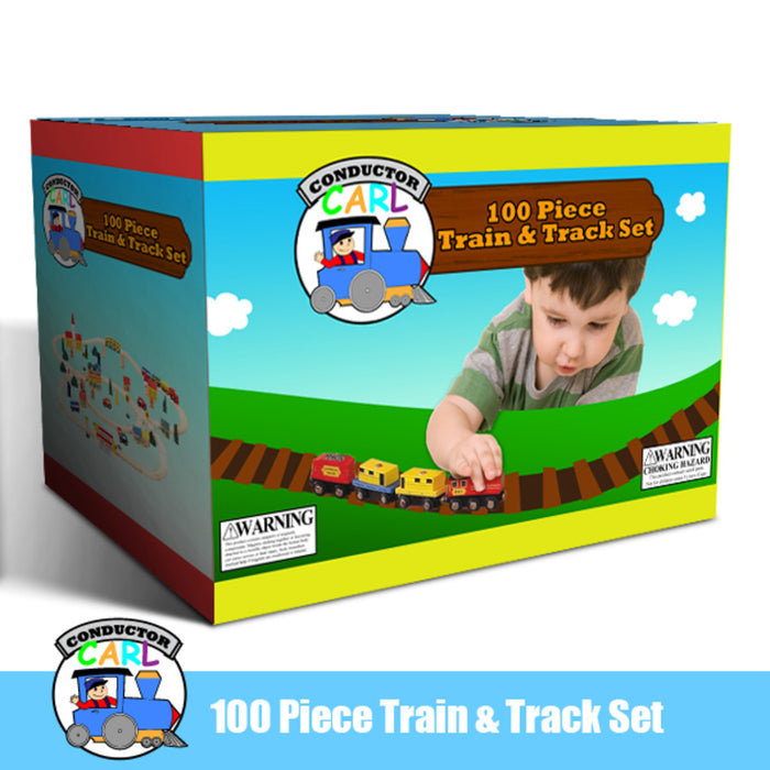 Brybelly Conductor Carl 100 Piece Wooden Train Set