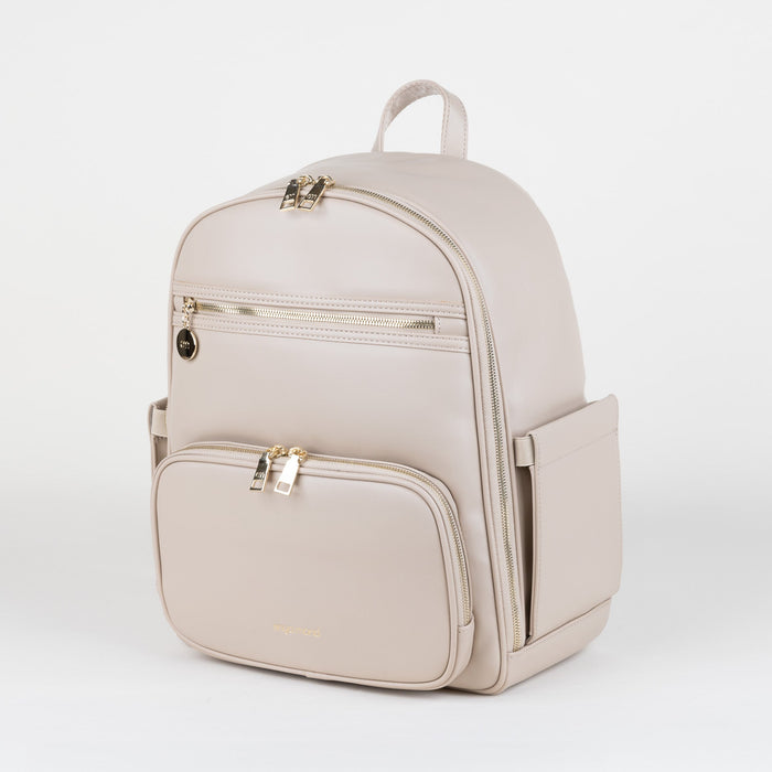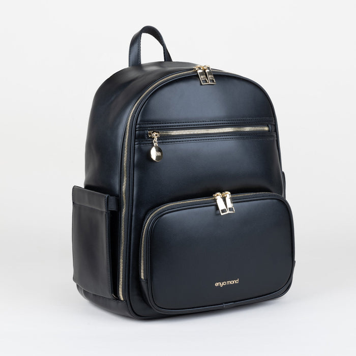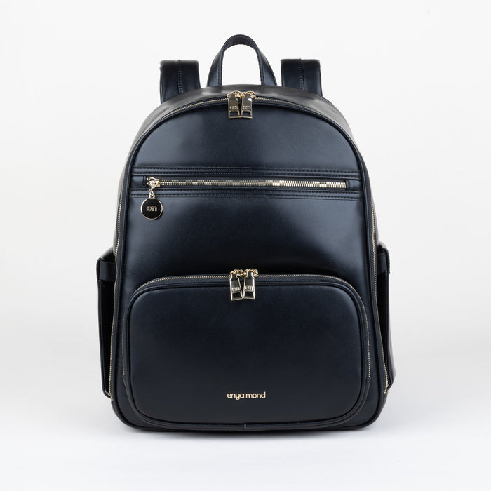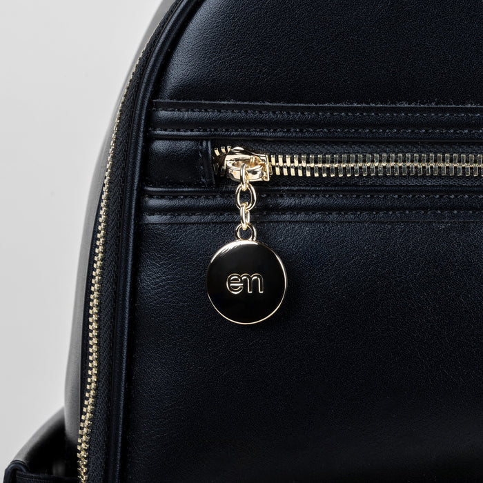 Constructed from the finest smooth vegan leather, Elara shines with a sleek allure. The impeccable design is evident in every facet of the bag - from the durable zippers to the gleaming custom-logo hardware in light gold. And when life throws those little unexpected mishaps your way? Rest assured, the water-resistant lining is there to handle it with grace.