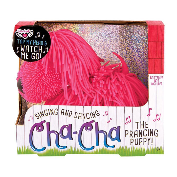 Make room on the dance floor for Cha-Cha The Prancing Puppy from Fashion Angels. Tap Cha-Cha on the head and watch this puppy dance and prance in step to its catchy tune. Make sure to check out it's super adorable wagging tail and the bark-bark-bark finish to it's dance routine. Cha-Cha's shaggy silicone coat flows and shakes with every movement. Comes in pink or white silicone - or collect them both for double the dancing fun! Requires 2-AA batteries (not included).