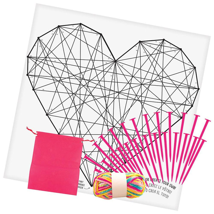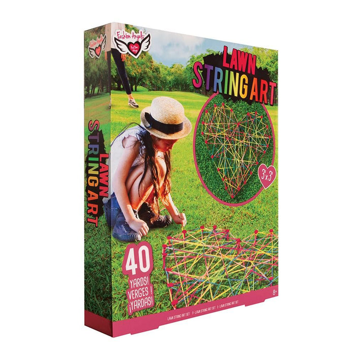 Create an artistic masterpiece in your backyard with the Lawn String Art Set from Fashion Angels. Start with the 3' heart-shaped pattern we have included to follow, set the lawn stakes in place then finish by winding the neon rainbow yarn to make a fascinating patterned string art design. Keep using and reusing this kit by designing and make your own patterns and designs with the lawn stakes for a one-of-a-kind backyard feature. This is a fun way to decorate your backyard for a party. Easy instructions included and comes in a reusable vinyl bag for easy storage. Kit includes: 40 yards of rainbow yarn, 25 lawn stakes, template, storage pouch, and instructions.