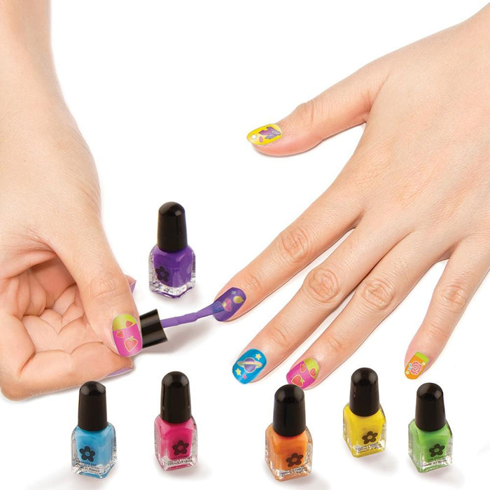 So many manis, so little time! Using the 6 bottles of nail polish and over 2000 nail stickers, girls will be able to manicure the entire neighborhood. We have included a rainbow of colored nail polish, pnk, orange, yellow, green, blue, and purple, in adorable glass bottles. Finish the look with over 2000 nail stickers. Packaged in a sparkly holographic foil gift box ready for birthday and holiday gifting.