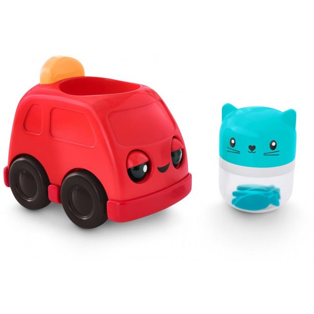 Get the fun rolling with this free-wheeling car, sized just right for your baby's little hands. When your little racer presses the removable kitty rattle in the driver's seat, the car's headlights pop and down-a great introduction to cause and effect! Where development comes into play, Sensory: the car's bright colors, rattle sounds, and exciting movements engage and excite your baby's senses. Fine Motor: Moving the rattle character in and out of the car, and grasping and moving the car around, helps foster dexterity and hand-eye coordination. Gross Motor: Pushing the car to send it rolling forward encourages little ones to crawl after their pal.