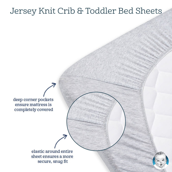 Our adorable cotton fitted sheets are perfect for sleepy babies and tired toddlers! Made with elastic edges, each sheet will fit safe and snug on any standard size crib mattress. The soft cotton is gentle on your little one’s skin and easy-care for any middle-of-the-night accidents. We had our essentials independently certified with STANDARD 100 by OEKO-TEX® so that you don’t have to worry about harmful substances in your baby’s nursery. Pair this sweet sheet with our coordinating plush blankets, milestone blankets, changing pad covers, and flannel baby blankets.