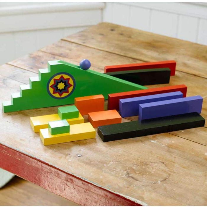 Season after season, our customers have loved this best-selling game. So, we made it even better -- we updated colors, added patterns, increased the number of pieces, and added a few new cool challenges. Just arrange the dominoes in a serpentine pattern, then tip the first domino (or run the included wooden ball down the ramp) to start a chain reaction! Set contains 255 pieces (including pyramid step set and stairs/bridge set).