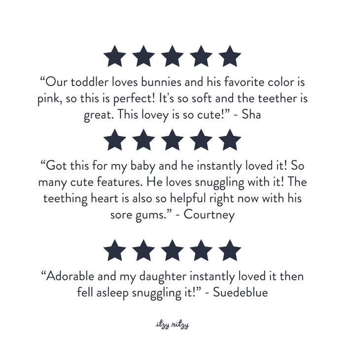Our snuggly Itzy Friends Toy Collection Itzy Lovey™ features soft sherpa fabric and textured ribbons that baby will love to explore! A textured silicone teether helps massage and soothe sore gums, and crinkly arms and legs are sure to keep baby entertained with their gentle sound.