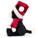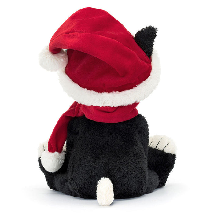Our iconic cat is ready for the holidays! Christmas Jellycat Jack has his trademark black and cream fur, with big stitch paws and a cheeky smile, but this time, he's wearing a red velvet pompom scarf and matching hat with cream bobble. Lift up the hat for a festive surprise: an orange velvet jelly!