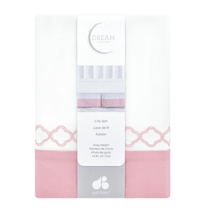 Just Born Dream Crib Skirt, White & Pink Trellis
