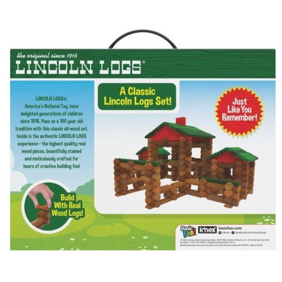 Recreate joyful building memories with your children and grandchildren with the LINCOLN LOGS Classic Farmhouse! This set contains 268 all-wood parts, including meticulously crafted, beautifully stained logs, just like you remember. These classic wooden logs and roof pieces easily stack together to create the Classic Farmhouse, plus 2 other nostalgic log structures. After you’ve followed the included building instructions, use the parts to design and create anything you can imagine! Building and stacking with LINCOLN LOGS aides in the development of fine motor skills, hand-eye coordination, and manual dexterity, and allows toddlers as young as three years old to flex their imagination muscles! LINCOLN LOGS have been America’s National Toy for over 100 years, delivering quality toys that stand the test of time and can be played with again and again. Retail Package : 18.5" (W) x 4" (D) x 14" (H), Weight : 8.8 lb