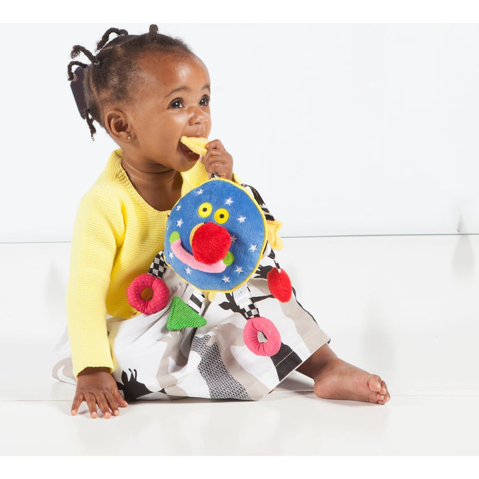 Same smiling face as our larger Whoozit, but small enough to tuck easily into a purse or diaper bag. Baby Whoozit is loved by babies everywhere and has garnered several prestigious awards and celebrity attention for its universal appeal and thoughtful design. Features 7 high contrast arms with many hidden noise makers including rattles, squeakers, and crinkle paper that perk up little ears. Plus, peek under Whoozit's squeaker nose to reveal a hidden mirror. With all these features, you'll quickly discover why Whoozit is Baby's Favorite Friend.