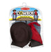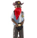 - Includes pleather chaps, denim-and-pleather vest, hat, red bandanna, and removable badge.
