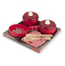 - Includes saucepan, stockpot, frying pan, 2 lids, oven mitt, wooden spoon, and wooden spatula