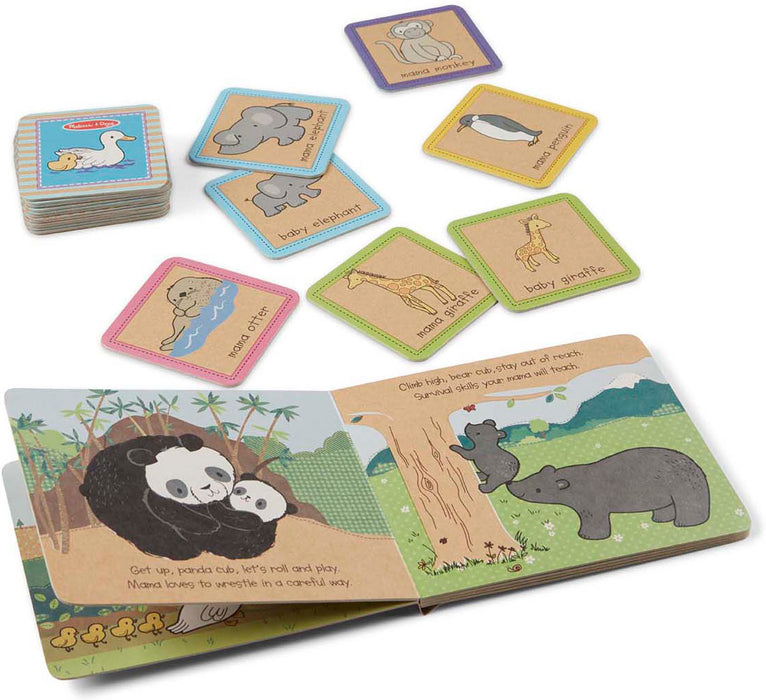 The mama animals love taking care of their babies in this adorable board book and memory match game boxed set. The 10-page board book features sweet illustrations and rhyming verse about 10 mom-and-baby animal pairs (ducks, pandas, giraffes, otters, and more). Then, help each mama find her baby by playing memory match with the 20 sturdy, chunky cards (10 mamas, 10 babies) that are easy for little fingers to flip. The book and cards store neatly in a convenient take-along box with handle. Natural Play products use recycled materials and soy-based inks. They’re a hands-on way for kids to discover the world around them!
