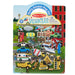 - Double-sided glossy background with a city scene and a country/construction site scene to fill again and again; convenient carrying handle--perfect travel activity for families on the go