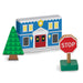 - 32-piece set of wooden streetscape "blocks" to create a town