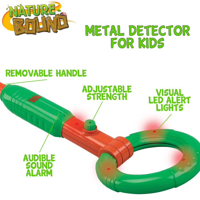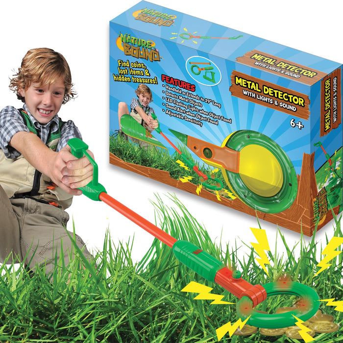 This beginners metal detector is very easy to use and lightweight. It’s light enough for smaller children but tough enough for an adult. Our advanced technology detects metal objects, jewelry, coins, or other valuables. Simply scan the ground, grass, or sand and listen for the beep tones and LED lights flashing. Nature Bound Toys are nationally recognized and we provide a 100% satisfaction guarantee.