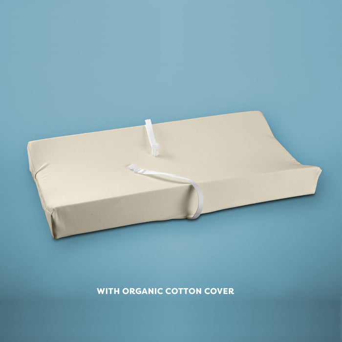 The Little Dreamer Contour Changing Table Pad is a two-sided contour pad complete with safety straps and mounting hardware. Made in the USA, this changing table pad is covered with premium performance fabric cover that is hypoallergenic, antimicrobial, water, stain and odor resistant.