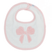 The Boucle Bow Applique Terry Bib is a charming and practical accessory for your little one. This bib is crafted from soft velour terry cloth, providing a gentle touch against delicate skin. It features an adorable boucle bow applique that adds a touch of elegance to mealtime. The contrast gingham binding enhances its visual appeal, making it a stylish choice for any occasion. The bib is designed with a dot minky backing, offering an extra layer of comfort and absorbency. For easy and secure fastening, it includes a convenient hook and loop closure. Measuring 9 1/2" x 8 1/2", this bib is perfectly sized for infants and toddlers. The front is made from 100% cotton, ensuring breathability and softness, while the back is crafted from 100% polyester for durability and easy maintenance.