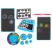 Contents: Drawing Stylus, Deluxe Non-Slip Ring, 6 Glitter Wheels, 8 Sparkly Scratch Sheets, Sparkly Sticker Sheet, 8 Rainbow Scratch Sheets, Rainbow Sticker Sheet, Storage Tray, Guide Book