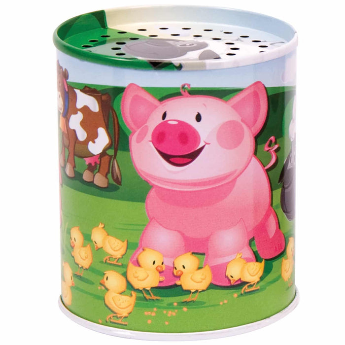 Mooo! Baahh! Our tin animal sound maker brings the farm to you! Graze in the fields and bask in the mud with your new farm friends! Just tip them over to hear their sound. Order includes one sound maker randomly chosen.