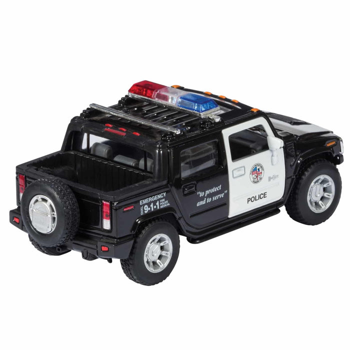 Schylling’s Diecast 2005 Police Hummer H2 is made from real metal with a hand painted finish. This officially licensed replica features a pull back motor, Diecast body with authentic Hummer H2 styling. Scale: 1:40 and 5 Inches long