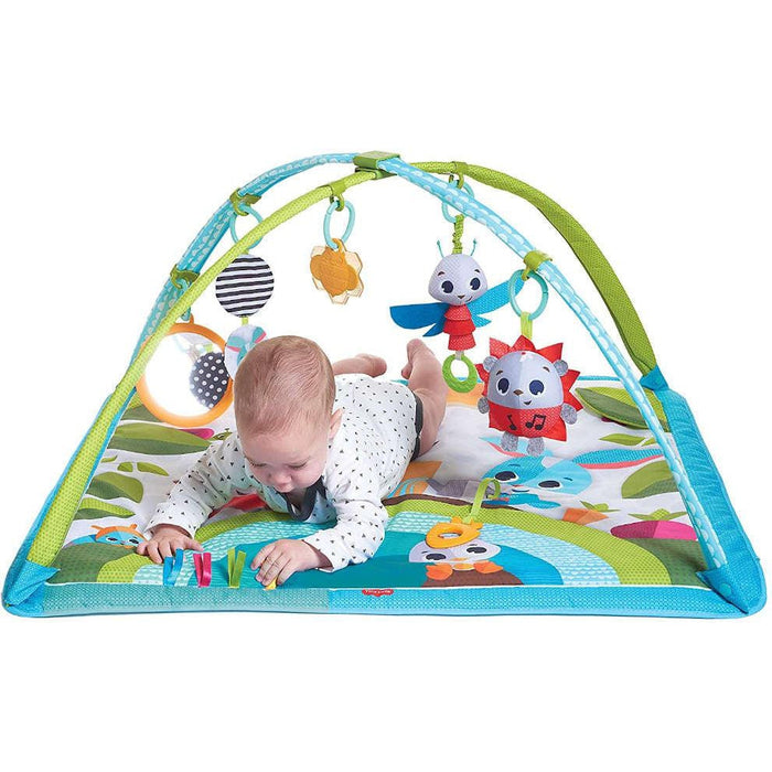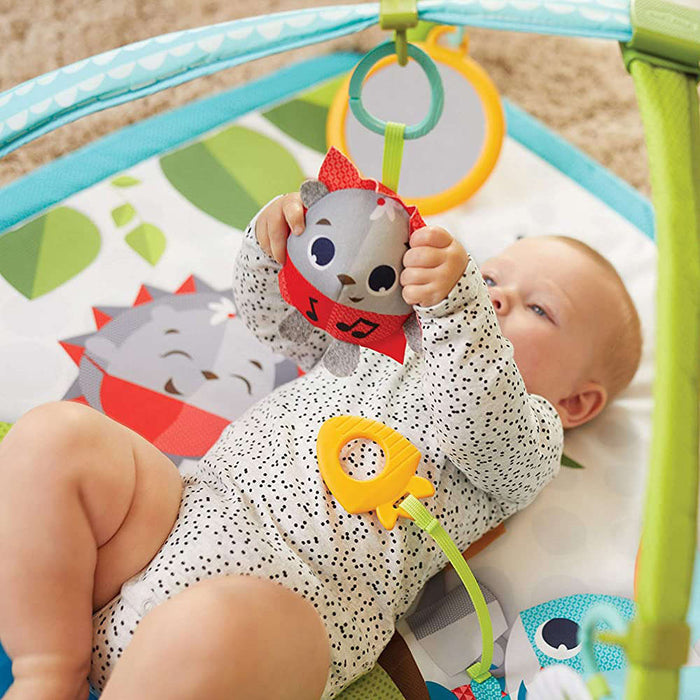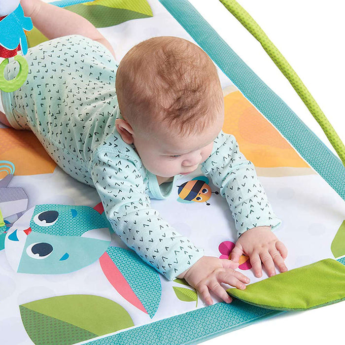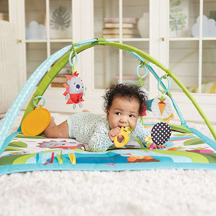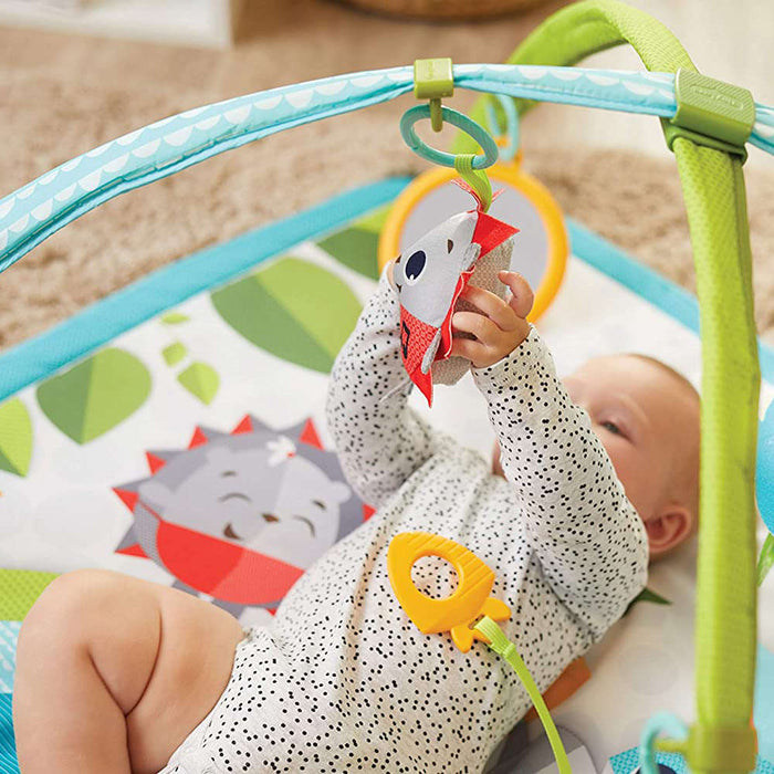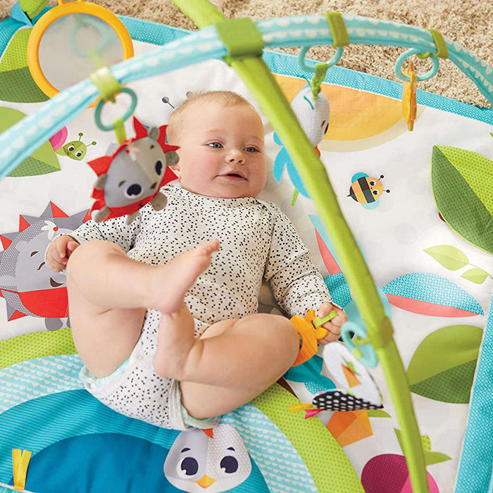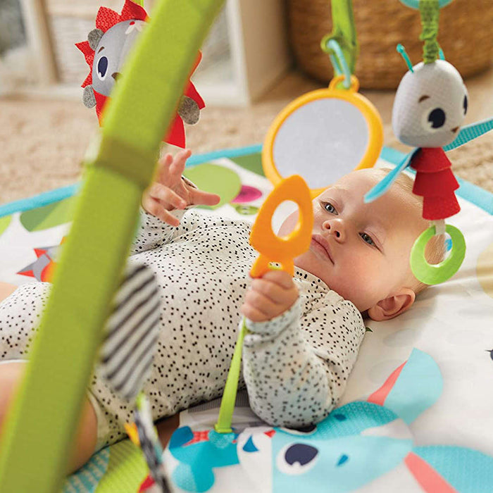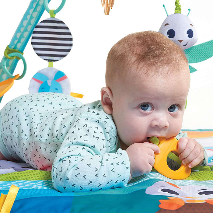 The Sunny Days Gymini is an innovative developmental mat filled with fun and challenging activities, friendly characters and vibrant colors that take baby on a journey of exploration. Every part of the Gymini was carefully designed with baby’s development in mind, inspiring them to continuously discover, learn, and grow. The Sunny Days Gymini was created to encourage development in every area of the 7 developmental wonders.
