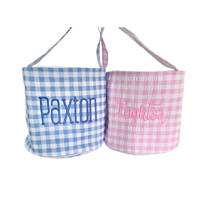 Gingham Easter Basket. Great for monogramming. 10" deep, 8.5" wide.